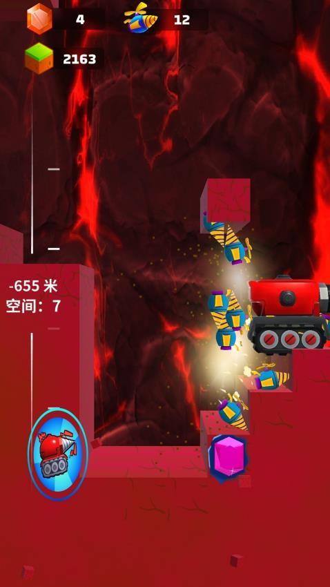 4、在空间10的523米这个深度里面,存放着许多的蓝色钻石和红石钻石,你需将它们挖掘出来。