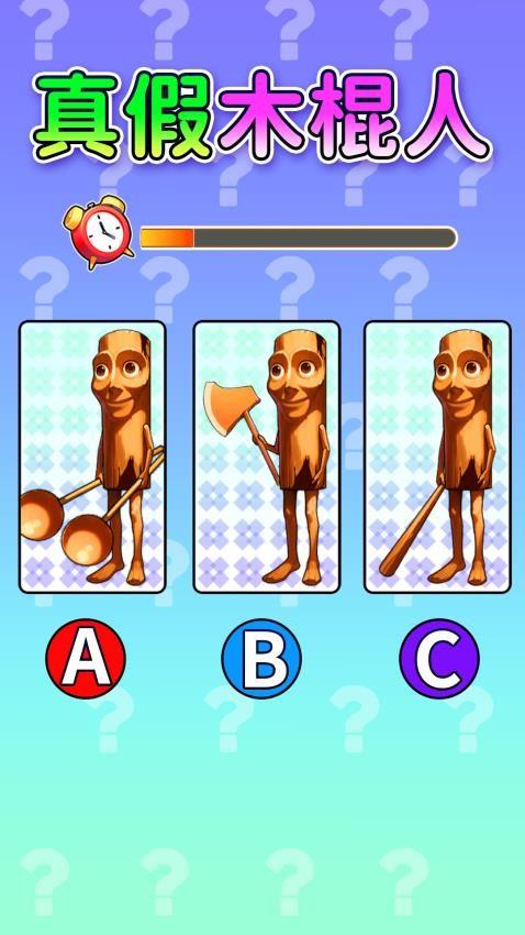 3、如图所示,显示木棍人,您需要找到正确的木棍人,很明显第三个是正确的,拿斧头和拿水瓢的都不正确