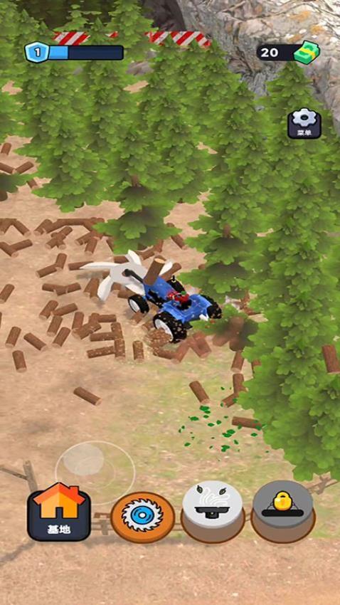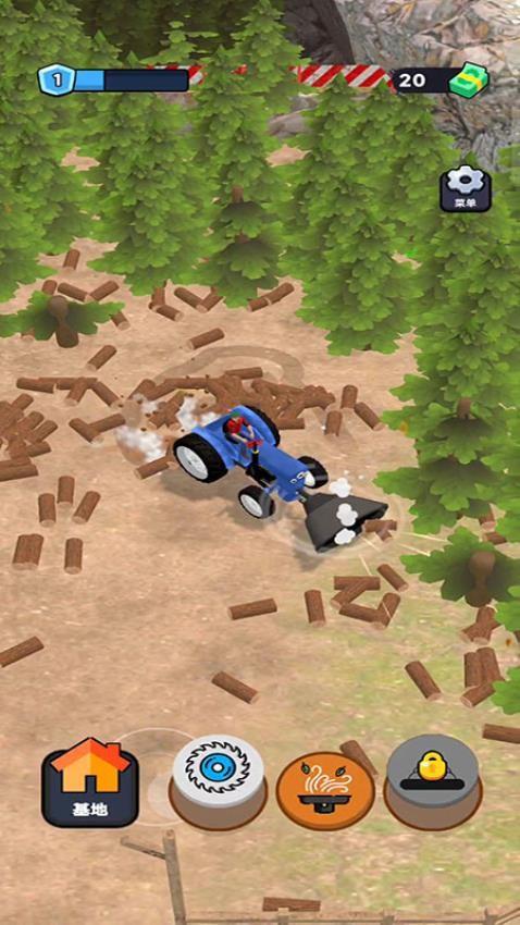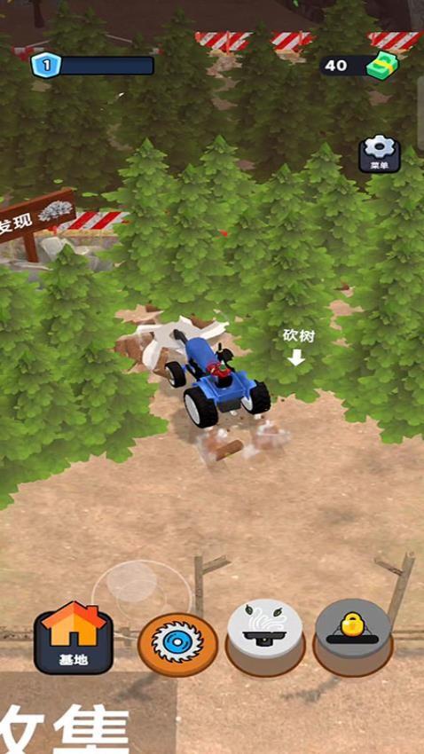 1、开启挑战之后你需驾驶基础伐木机进入到森林中,尽快收集更多木材便可开始售卖。