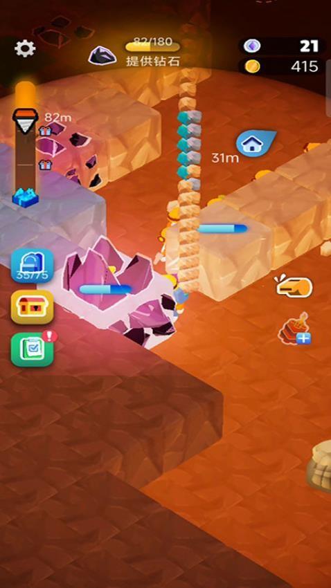 钻石矿工探险官方版是一款非常有趣的休闲游戏。游戏提供了大量不同的挖矿工具,将它们利用在适合的挖掘阶段中,能够得到足够的钻石数量,满足你的挑战需求。在矿场附近你需搭建自己的基地,用来存放钻石和工具,并且还可设置一个售卖区,在其中可售卖各种颜色不同的钻石,还能很快获得相应资金。玩家可以在挖掘过程中逐步发现相应要素,及时处理各个有关问题,可以加快挖掘进度,从而可得到有利结果。玩家可逐步扩大矿场面积,能够在这里持续收获更多钻石。如果你也对钻石矿工探险手机版感兴趣的话,快来试玩吧!