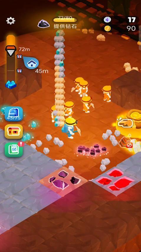你将在游戏中扮演一名矿工,目标是深入地心,寻找传说中蕴藏着神秘力量的传奇矿石。但想要挖穿坚硬的岩石可不是一件容易的事,单靠一个人根本无法完成这项庞大的工程。你需要雇用其他矿工组成强大的队伍,为他们分配任务、指示挖掘路线,并不断优化工作流程,让整个团队运作得井井有条。