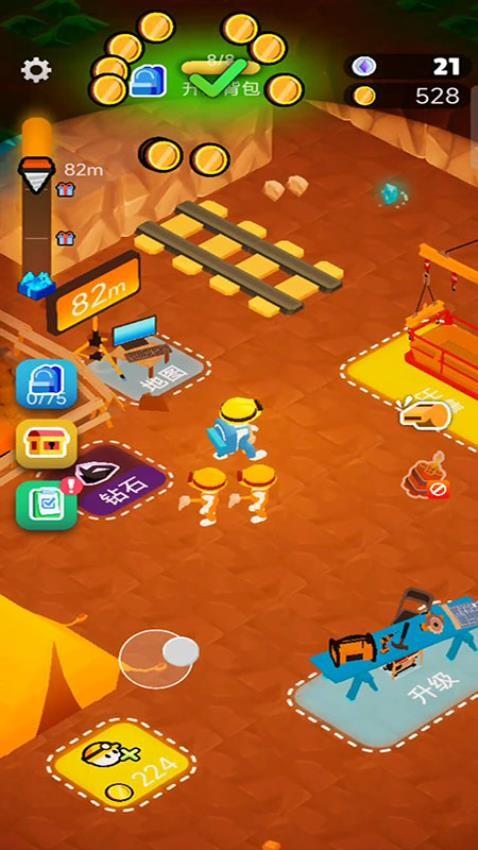 可以在商店里面购买大型挖掘器械,并且还要逐步提升等级,加快工作进度。