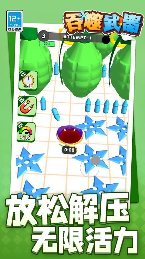 吞噬武器手游官网版是一款非常有趣的休闲闯关游戏。游戏拥有众多武器等待吞噬利用,通过吞掉散落的武器装备和弹药强化自身能力,控制黑洞前往不同区域进行吞没,在时间结束之前尽可能收集更多的武器道具,这样即可应对所有巨人的进攻,成功消灭全部巨型怪物才能完成最终的关卡挑战获取奖励,所以要特别注意收集散落四处的物品,任何疏忽都要避免发生。关卡难度一步步提升,后期会慢慢出现极其复杂的挑战,甚至武器弹药数量也会减少,必须合理运用弹药才有机会消灭所有怪物,任何浪费都有可能造成闯关失败。