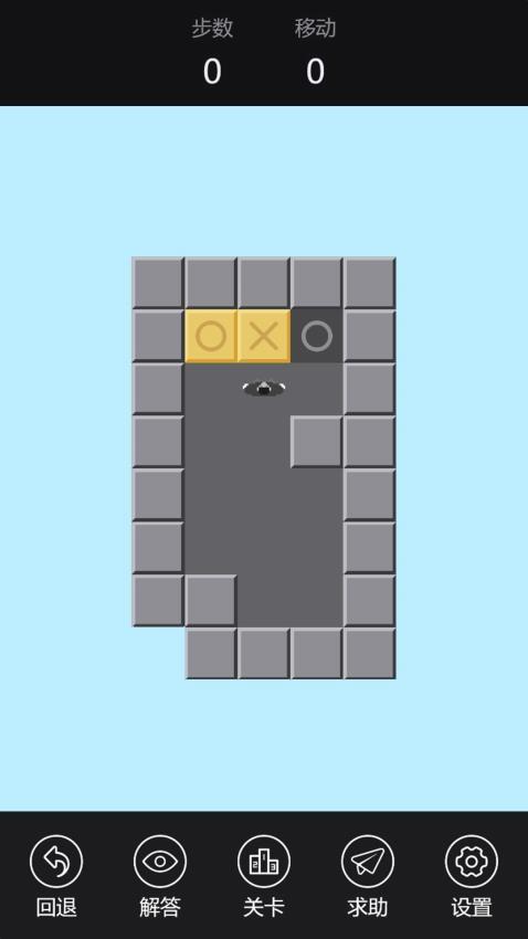 2、如图所示,画面显示“灰色圆圈”,显示“黄色×”,需要将黄色的方块推到圆圈里面