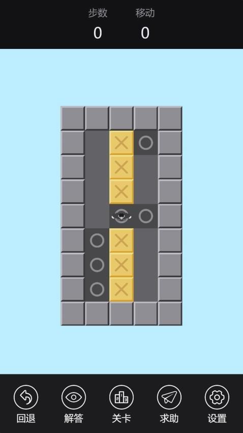 堆叠小能手游戏手机版是一款简单的推箱子游戏,画面显示黄色的箱子,显示灰色的圆圈,需要将黄色的箱子推到圆圈里面才能胜利,进入游戏关卡就可以显示很多箱子,你需要分析不同箱子应该如何推动,控制画面的一个角色移动到指定的位置,从而开始推动箱子,需要将全部箱子推动到全部圆圈才能挑战成功,所以非常考验玩法的观察力,游戏也为新玩家提供了解答模式,如果当前的关卡不知道如何通过,可以点击解答按钮,查看官方提供的引导步骤教程,可以查看每一步的操作介绍,让玩家知道如何通过关卡。