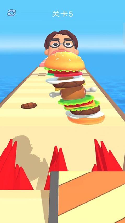 可以在游戏不断收集食材,将其叠加在一起,可以制作几十层的汉堡,让顾客满意