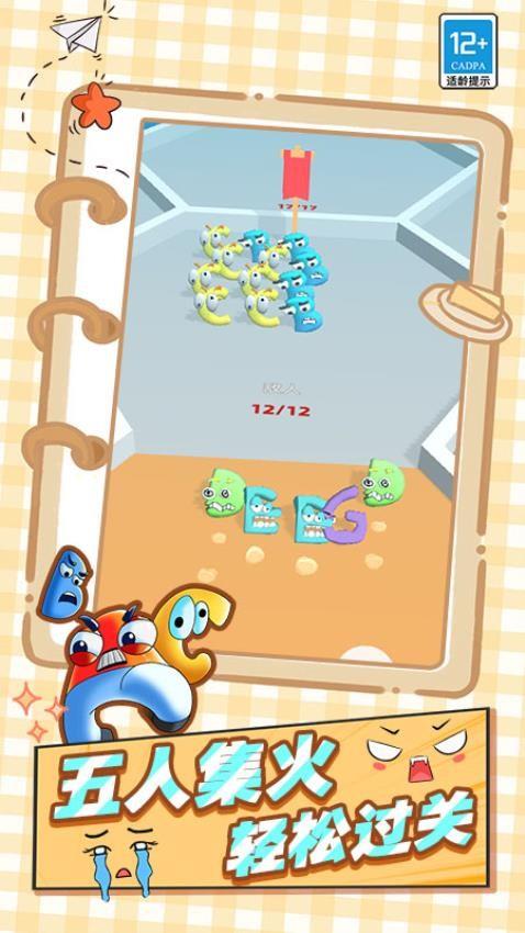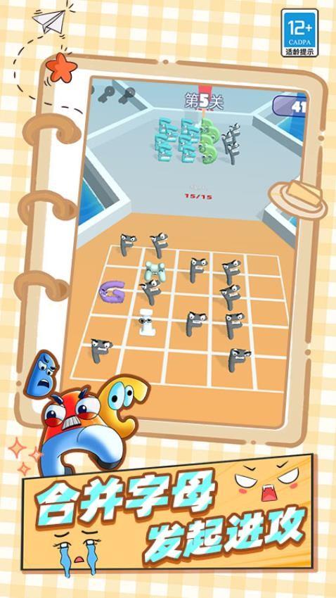 一款趣味十足的游戏。玩家将操控可爱的字母怪物,在多样的场景中展开战斗与冒险。通过合并字母怪物提升实力,以实力碾压对手,也能巧妙剪刀敌人。游戏中有五人集火轻松过关的畅快,也有合并字母发起进攻的策略玩法,还有请求集合跟上脚步的团队协作,带来丰富的游戏体验。