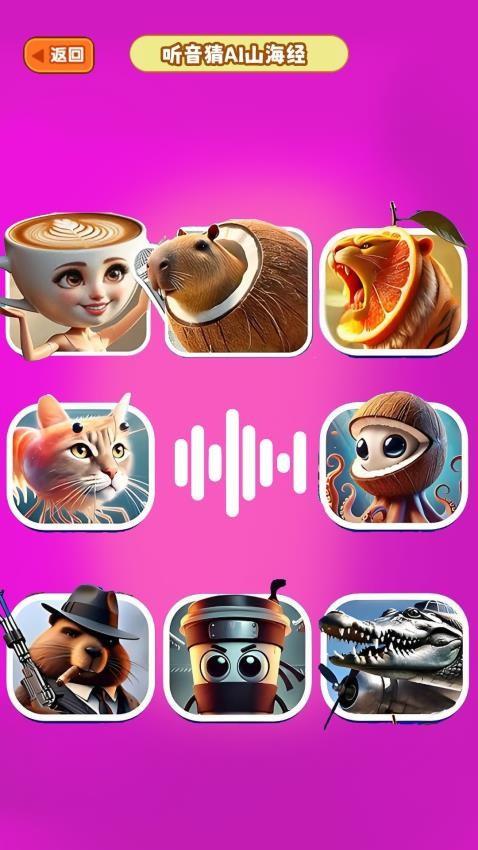 《山海异兽猜一猜》是一款融合了AI山海经热梗与听觉挑战的单机休闲游戏。玩家将通过聆听角色的独特音效,识别出来自“外国山海经”宇宙中的各种奇特生物,如木棍人、仙人掌大象、卡布奇诺小姐等,体验一场既搞笑又烧脑的听觉盛宴。