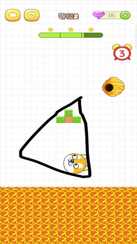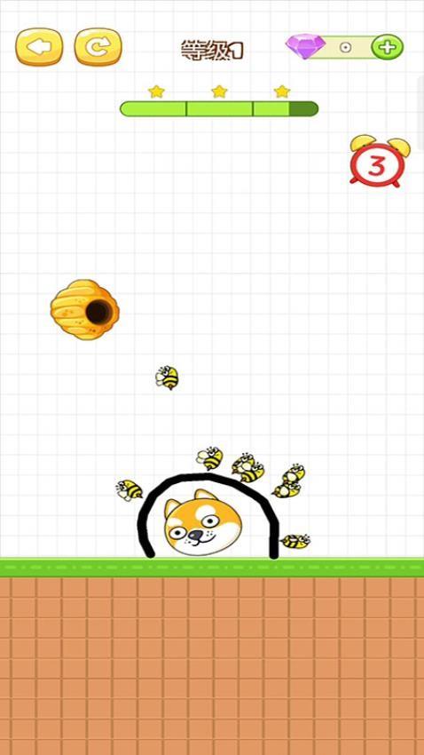 1、在等级1中,你需要画一条弯曲的线将狗头包裹起来,蜜蜂便不能接近狗头。