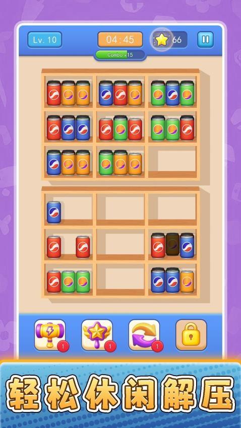 货场对对碰是一款非常好玩的休闲消除闯关游戏。整个货场之中拥有许多的货物,玩家可见到饮料、零食、玩具、生活用品等等,将相同的货物移动到同一个货架框内,这样即可完成消除目的,而且你还要关注一定的逻辑规律,找到更加简便的消除方法。逐步完成更多关卡即可在游戏中获得大量的星星,你还需尽快解锁更多关卡,即可开启无限挑战之旅。在相关阶段中需要注意观察各个商品的布局情况,能够很快确定相应的移动计划,并且还能很快收获到相应好处,为你提供便捷条件。如果你也对这款游戏感兴趣的话,不妨来体验一下吧!