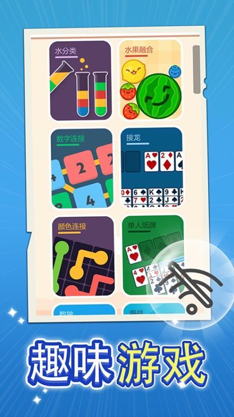 想随时享受多样的趣味游戏吗?《趣味游戏盒》一次满足你的多种需求!这里汇聚了 “水分类”“水果融合”“数字连接” 等多款休闲小游戏,每一款都有独特玩法,轻松上手又充满挑战。无论是想锻炼逻辑思维,还是单纯放松娱乐,都能在这里找到乐趣。精美的画面,简洁的操作,随时随地开启游戏时光。支持安卓 5.0 以上版本,快来下载这个宝藏游戏盒,体验一站式的游戏欢乐,让每一刻都充满惊喜与趣味!