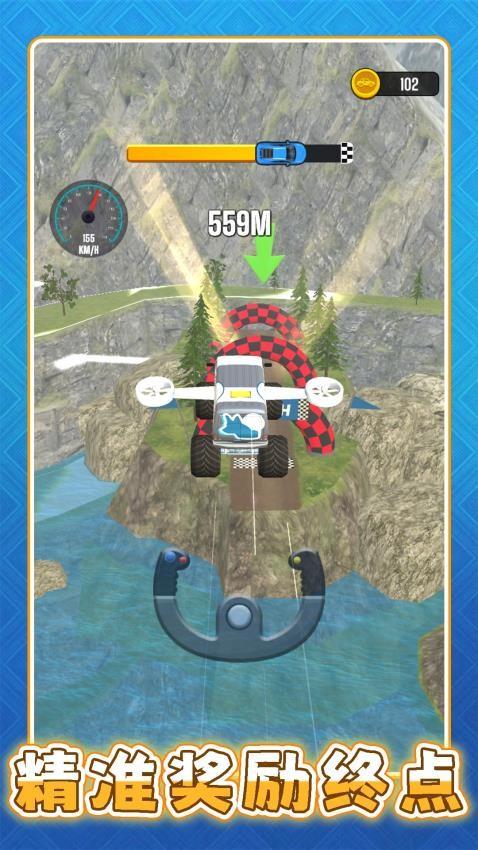 超级遥遥领先是一款超级好玩的休闲游戏。拖动汽车奋力跳跃,积蓄澎湃动力,待时机成熟,以完美角度潇洒释放,瞧那飞行汽车在空中悠然滑翔。这款汽车跳跃游戏,绝非单纯比拼距离——需策略性升级汽车能力,助其飞得更远。不管是提升速度、加装助推器,还是优化空气动力学设计,这款飞行汽车游戏玩法多样,让人一旦上手便难以放下。