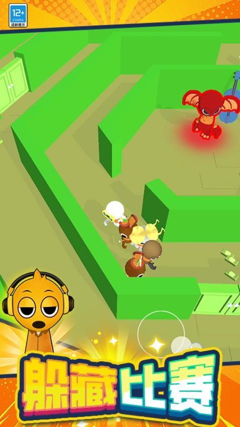 1、躲藏挑战过程中你需与队友一同躲避红色的怪物,在迷宫中不断奔跑即可。