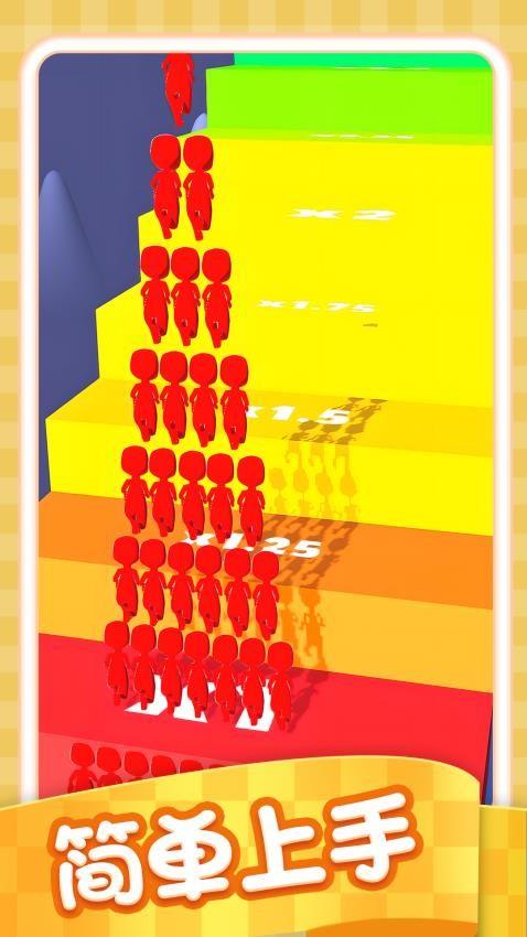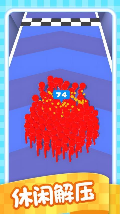 滑动屏幕集结你的小人军团!左右移动吸收更多伙伴壮大队伍,最后冲向敌方阵营展开疯狂碰撞,人数越多威力越强,看谁能把对手撞得溃不成军!