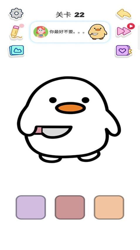 2、关卡22里面你可见到十分可爱的小动物,并从界面下方的颜色之中挑选色彩进行涂鸦。