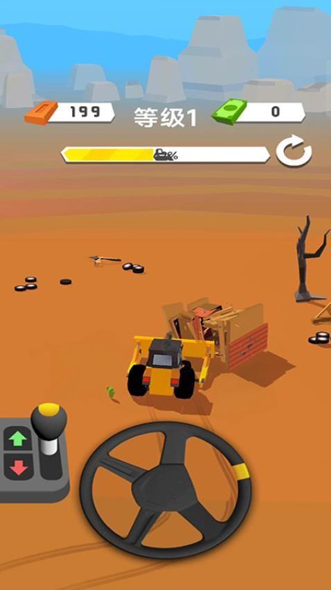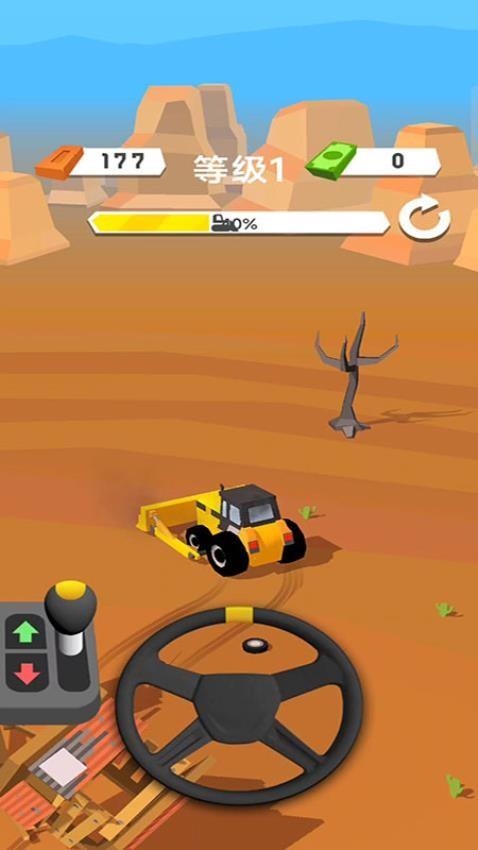 1、关注游戏的进度情况,接下来即可操控推土车完成相关的挑战任务。