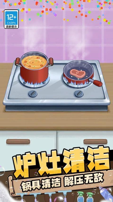 独特的锅具洗刷滑动解决,清除所有油污就能完成关卡挑战;