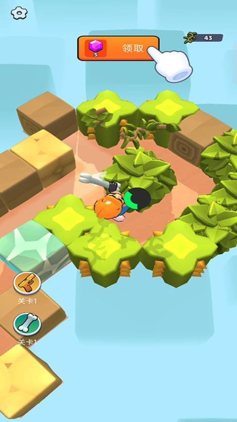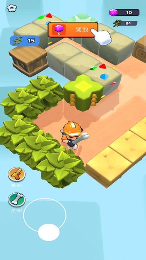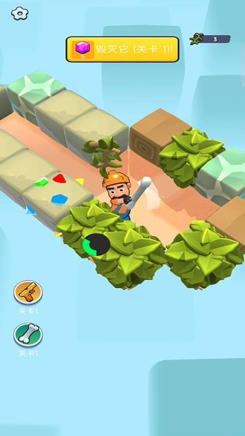 1、进入游戏后,你可以操控着主角在关卡1中尽力铲出杂草,建造基地。